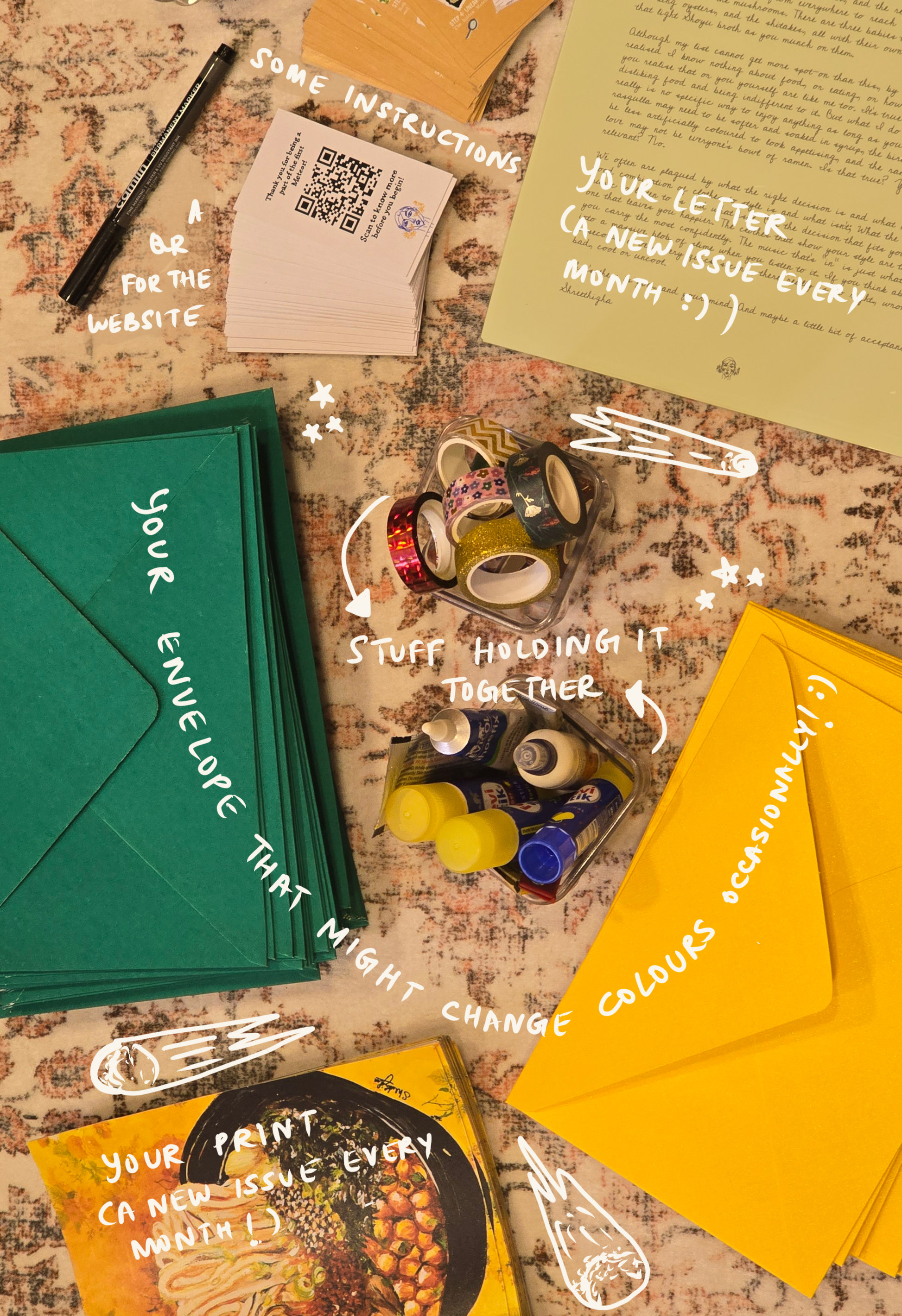n the first week of every month, a Meteor lands at your doorstep in the form of an envelope, containing a painting print and a letter with a story.